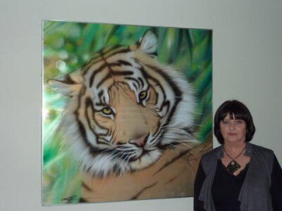"Just a short note to thank you for painting such a beautiful copy of the picture of the tiger I sent you which my son photographed for me. The style you painted on the “Aluminium” frame is unbelievable and the tones change in the different light formations which gives the painting a uniqueness which can’t be seen in the photo."