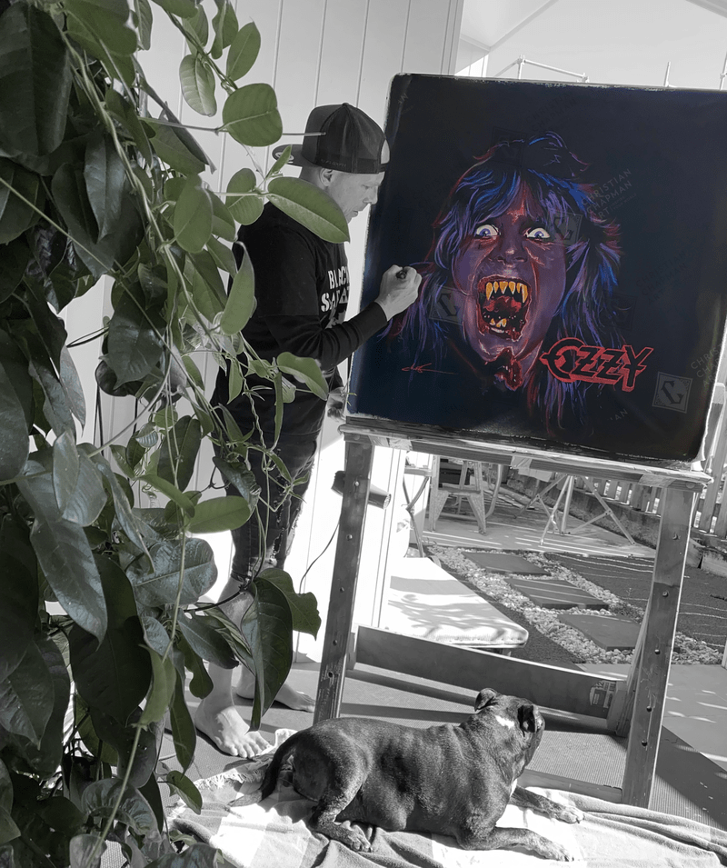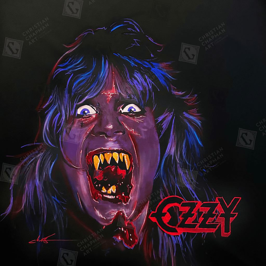 This painting is an original artwork of Ozzy Osbourne on framed canvas by Christian Chapman.