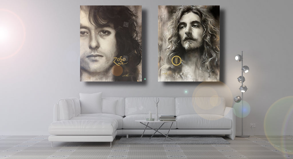 This painting is an original artwork of Jimmy Page on framed canvas by Christian Chapman.