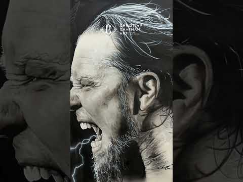 This painting is an original artwork of James Hetfield on framed canvas by Christian Chapman.