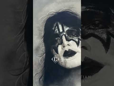 This painting is an original artwork of Ace Frehley on framed canvas by Christian Chapman.
