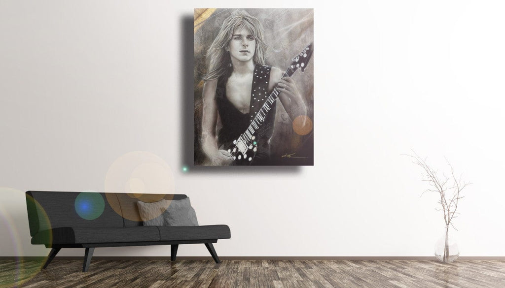 This painting is an original artwork of Randy Rhoads on framed canvas by Christian Chapman.