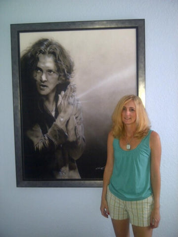 "When my husband went to pick up the piece at the frame shop the clerk at the shop told him that every person who came through the door commented on the painting. One woman in her mid seventies couldn’t take her eyes of it. She told the clerk that she was in awe of the painting-she was amazed at how beautiful the man in the painting looked and how the artist captured that beauty. The clerk asked her if she knew who Eddie Vedder is and she said NO…she just really loved the piece and hadn’t even thought it might be someone famous! I think that is a huge testament to Christian’s artistic ability. This woman was drawn to the piece not because it was Eddie Vedder but because the artist captured the essence of a beautiful man!"