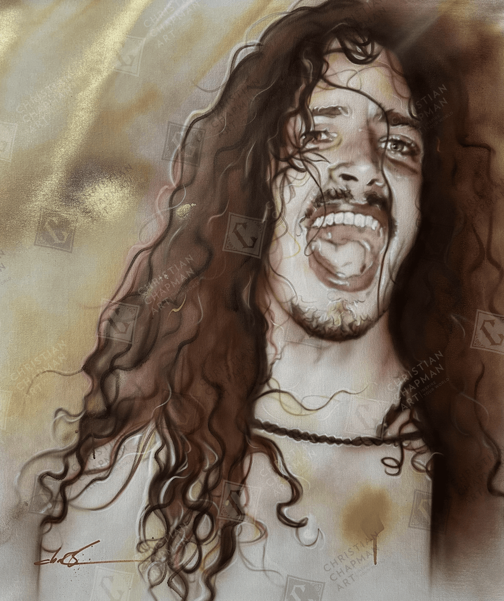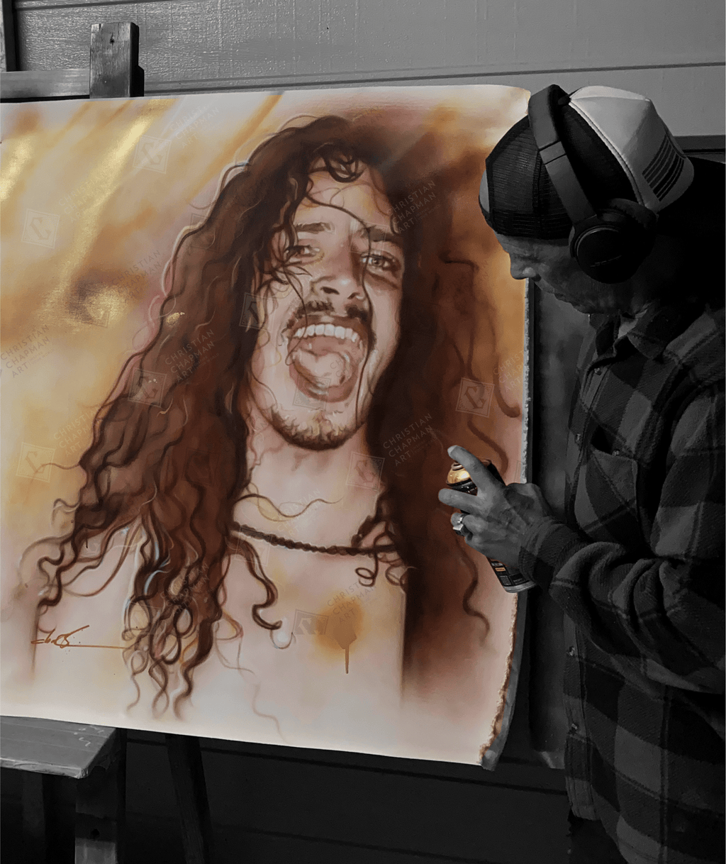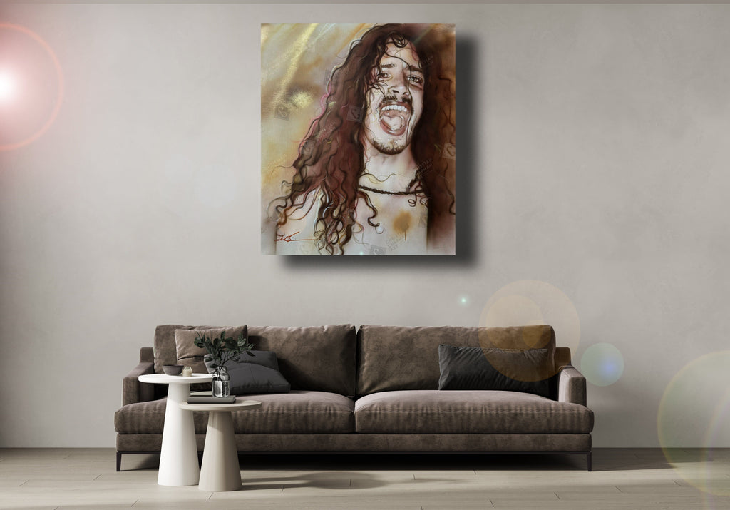 This painting is an original artwork of Chris Cornell on framed canvas by Christian Chapman.