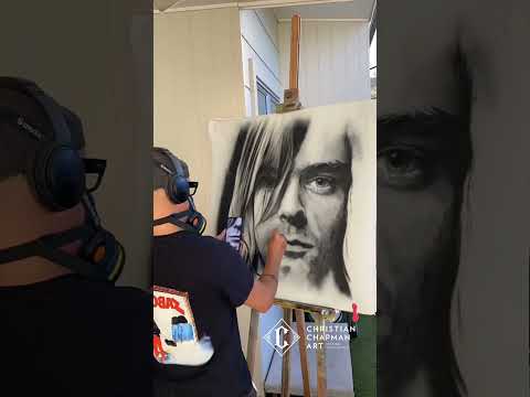 This painting is an original artwork of Kurt Cobain on framed canvas by Christian Chapman.