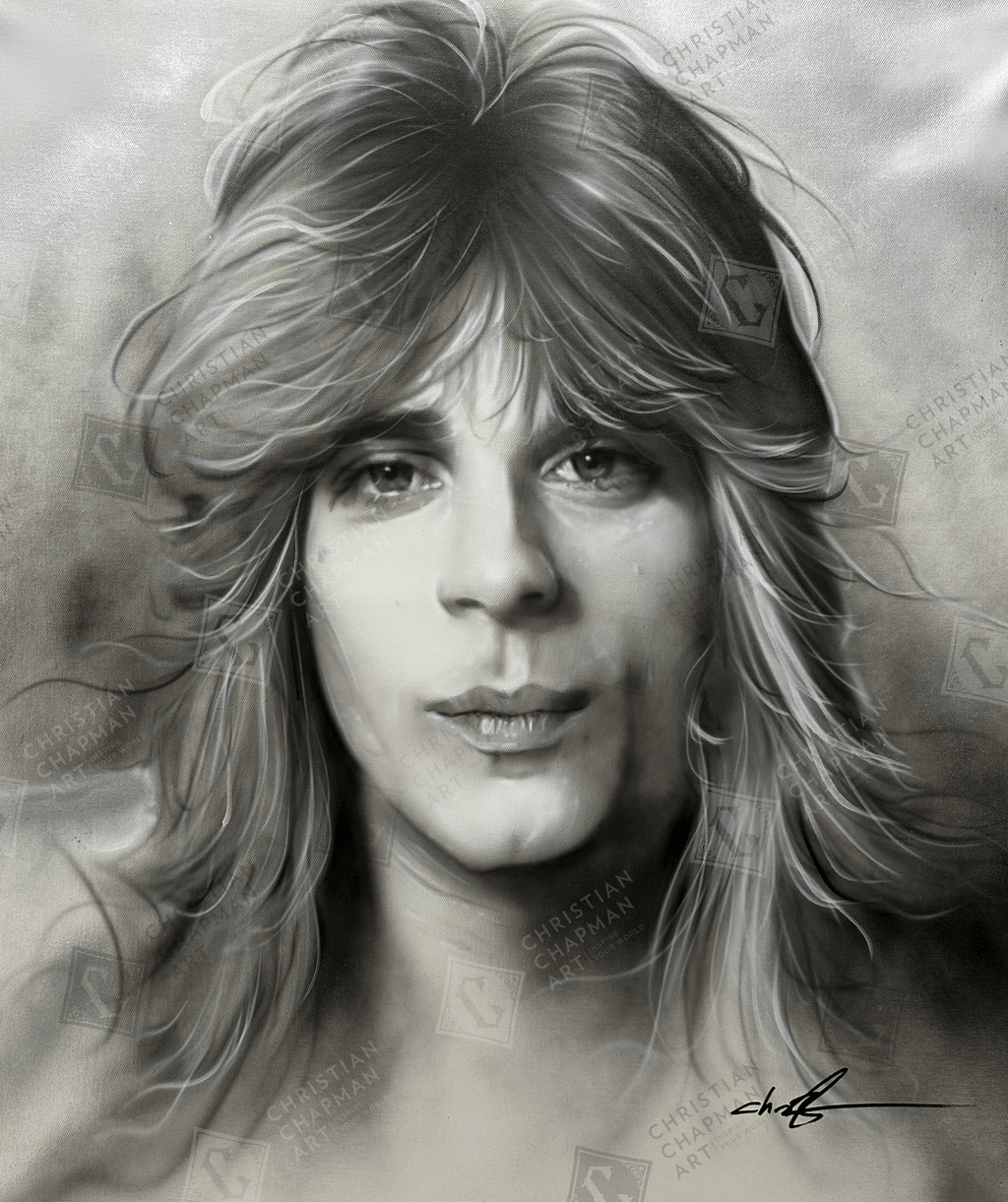 Exquisitely showcasing Christian’s highly unique airbrush style, the level of detail and resonance of vivid colour in these artworks is without comparison. Ornate accents contrast with bolder, softly-blurred backgrounds, creating a feeling of movement and an element of pure fantasy.