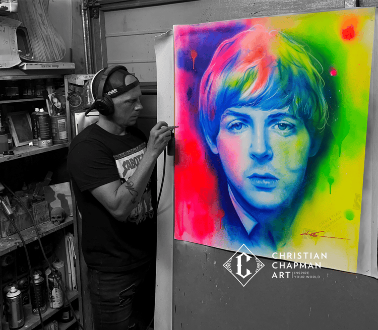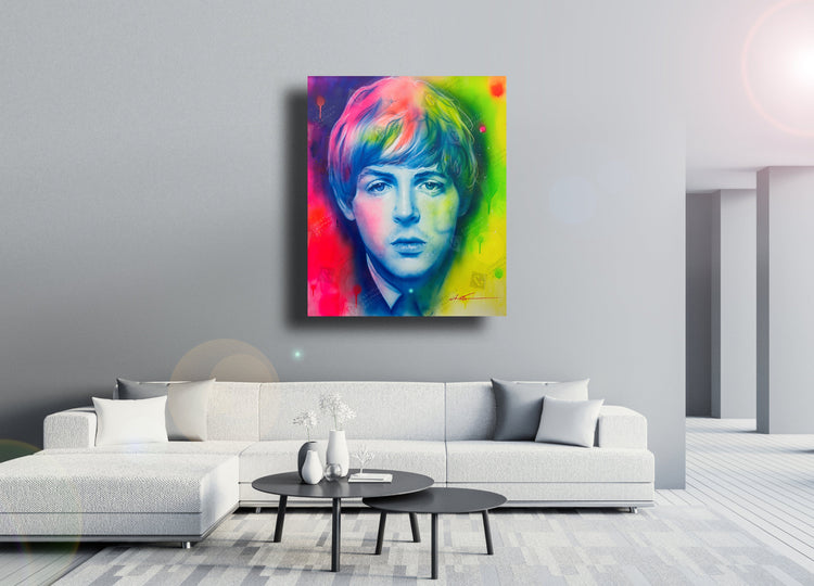 This painting is an original artwork of Paul McCartney on framed canvas by Christian Chapman.