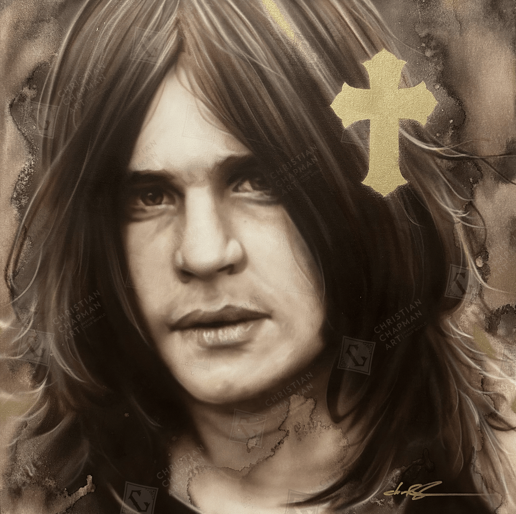 This painting is an original artwork of Ozzy Osbourne on framed canvas by Christian Chapman.