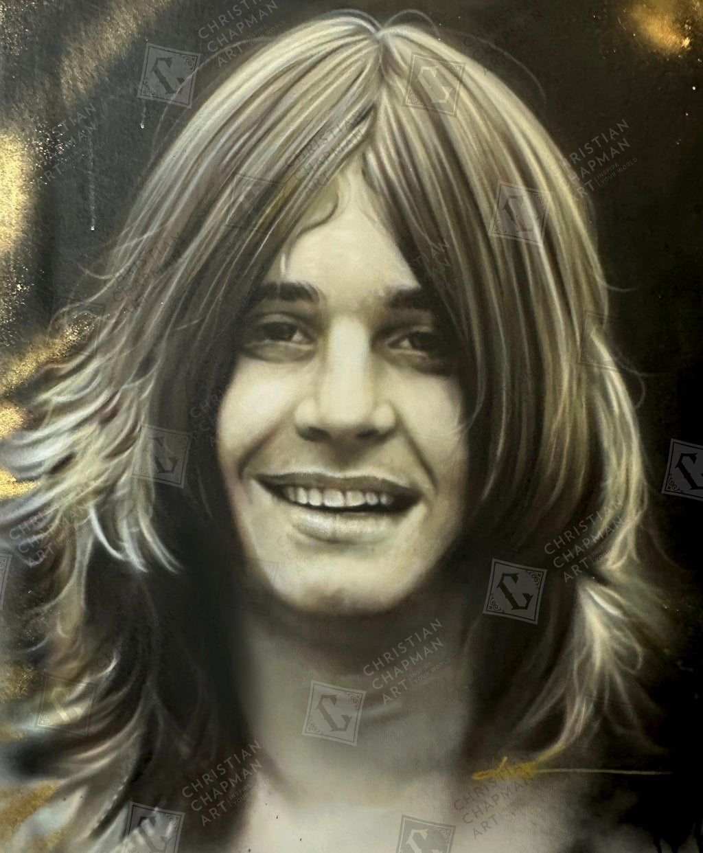This painting is an original artwork of Ozzy Osbourne on framed canvas by Christian Chapman.