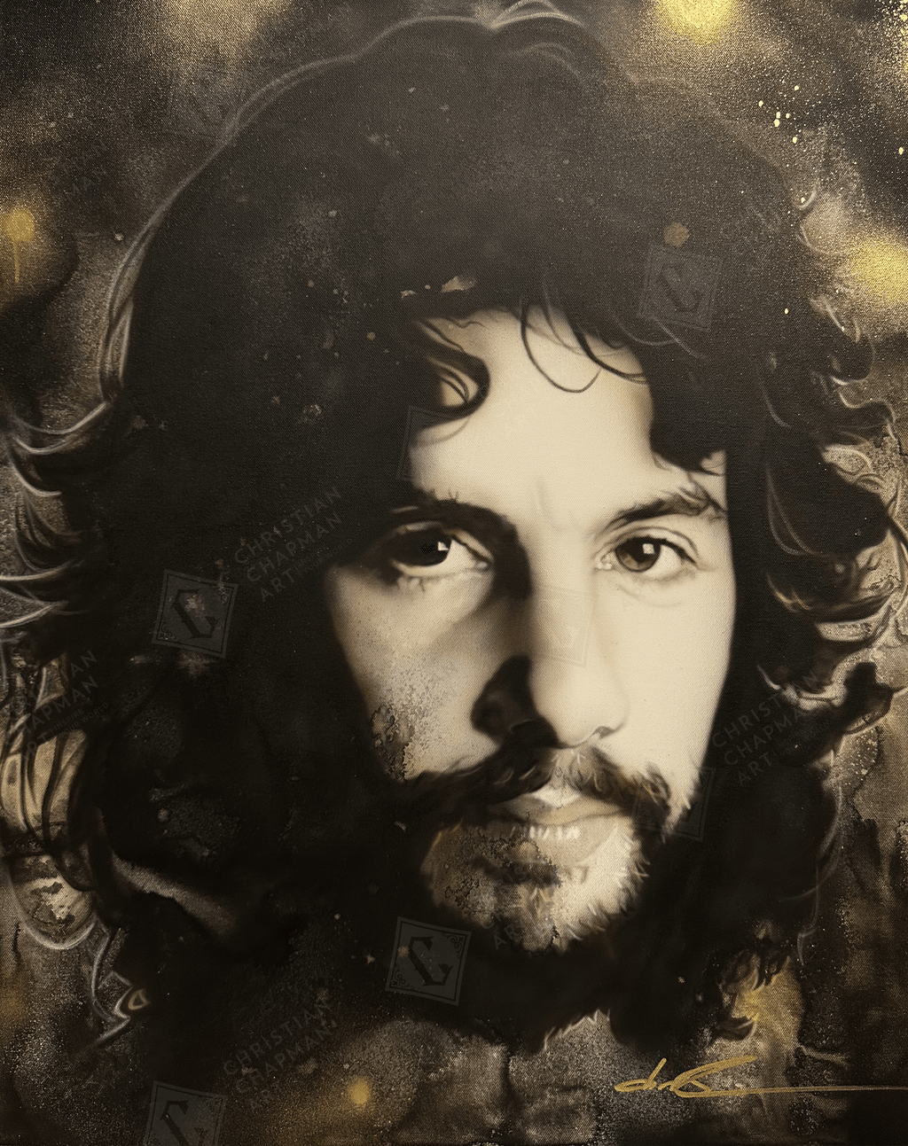 This painting is an original artwork of Cat Stevens on framed canvas by Christian Chapman.