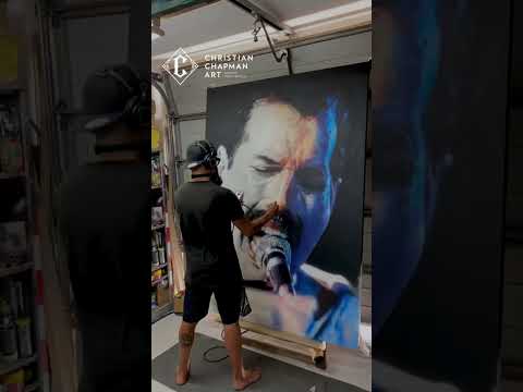 This painting is an original artwork of Freddie Mercury on framed canvas by Christian Chapman.